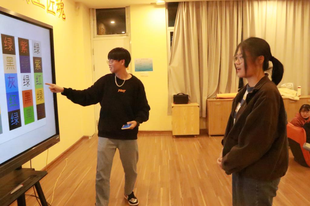 活动伊始,伴随着舒适轻柔的音乐,同学们在主持人李荣煌的带领下随意舞动,与迎面而来的有缘人微笑、碰拳,互打招呼。随着主持人不断喊出的数字,大家激烈抱团组队,“心心相印”环节让大家找到了自己的组织,还通过“真实自我四宫格”小活动介绍了自己并在主持人的引导下,为自己的小组取名字、给团队设计标志性口号和独特动作。刚刚组建的团队迎来了第一个考验,“心有守诚结”环节要求大家还原原有的小组围圈,同学们面对杂乱错综的链接沉着冷静、绞尽脑汁,用尽各种方法最终都回到了最初的团体,在这个过程中大家进一步接触团队成员,加深了对“集体”概念的认识。之后在“以画形心”环节,各小组围绕“未来的生活”进行为时五分钟的激烈探讨并用一分钟绘画完成了对个体和团体的期待,在主持人的引导下进行了团队契约宣誓,彼此承诺为对方保守秘密。活动最后,各组成员代表在团队鼓励下均快速、准确地念出了“左右脑之争”stroop文字为小组,团辅活动达到高潮,大家也纷纷感受到了团队的归属感和责任感。