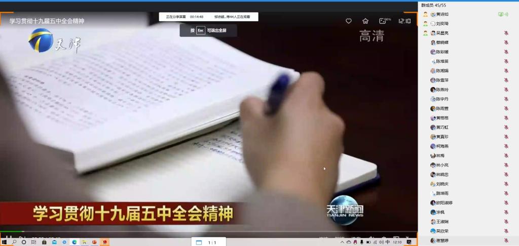 首先,团支书黄诗如同学开启群屏幕共享并邀请支部成员进入语音,组织委员吴晨亮同学发起群接龙签到,支部全体成员到会。随后黄诗如同学播放了团歌,支部成员在线上共同聆听,充分感受到班级团组织的凝聚力。接着,由团支书黄诗如同学分享的一则《学习十九届五中全会精神》视频与一篇《十九届五中全会公报》微信推文严谨详细又直观迅速的给支部成员普及了此次全会所要传达给人们的内容与精神,最后,成员们积极在群内分享了对于如何“学习贯彻党的十九届五中全会”的心得体会。在一片肃穆中,此次团日活动圆满落幕。