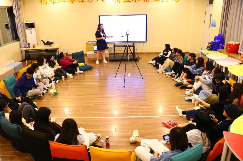 在会上,叶佳媚老师向成员们展示了过去一年里融媒体运营中心所取得的优秀成果,并鼓励学生在接下来的工作中要注重“保持良好的成绩、保持学习的热情、保持谦卑的心态”,老师的介绍让成员们更加明白身上肩负的媒体人使命,用自身的技能和热情,说好人文故事。随后,在王圣杰同学的组织下,新老成员通过精彩有趣的互动环节进行了自我介绍,加深了团队成员的情感,提高了团队凝聚力。