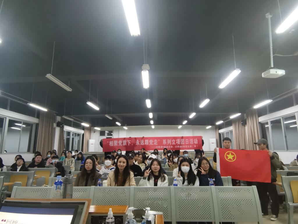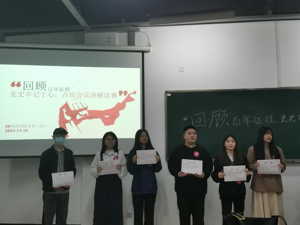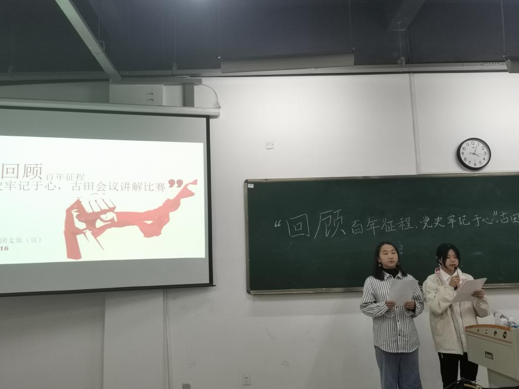 2021年11月16日人文社科系20级导游班迎来了第一次特色团日活动中的“回顾百年征程,党史牢记于心”古田会议导游词讲解比赛。本次活动在仓山校区教学楼举行,出席本次活动的有人文社科系邓婕老师、人文社科系何昕柔老师及20级导游班所有团员。