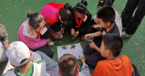本次活动以一场“热带雨林”之旅贯穿。热身活动中通过要求孩子们对“小雨”“中雨”“雷雨”三个关键词做出不同的指定动作“躲避酸雨”,提高小学生们专注倾听的能力。接着通过闯关“石林阵”,向孩子们提供石头与彩泥,指导他们完成自我像设计,并在“石林阵”蛇棋游戏中勇敢通关,通过通关活动设置中让孩子们分享自己的生活经验、情感情绪,定向关系互动等,促进团队成员间的沟通与交流。之后,鼓励小朋友们帮助神兽“榕”创建新家园。孩子们按要求就地取材校内的花草等自然资源,在团队沟通讨论和合力协作下为“榕”绘画出新家园的蓝图,并说出设计思想和各自的收获。在最后的总结分享环节,大家领悟到每个人都是团队中的一员,应该积极参与活动并且主动表达感想,也要关心游离于团队的同学,保持团体凝聚力才是团体高效的关键。