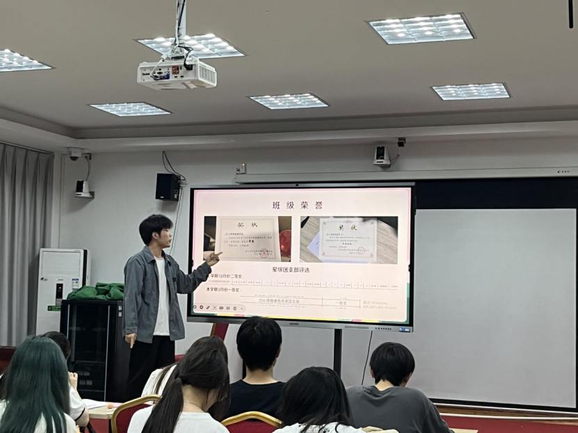 班长蔡鑫主持本次班会,首先,班会上向班级同学介绍最新的班委会成员,并确认下一阶段班级工作方向;随后,围绕上课、早操、晚自习、宿舍卫生等方面提出了同学们当中普遍存在的违纪违规问题进行分析,让同学们引以为戒,遵守学校的校纪校规;其次,总结开学以来,班级获得荣誉情况,希望在此基础上再接再厉争取更多的集体荣誉。班会尾声,班长蔡鑫鼓励全体同学在学业上刻苦认真、在工作上细心负责,为个人理想奋斗,为班级发展奉献。