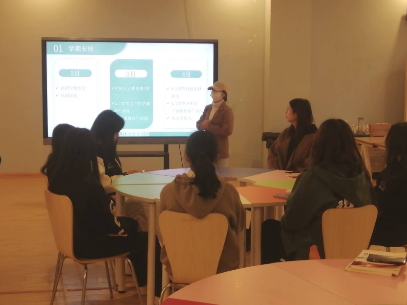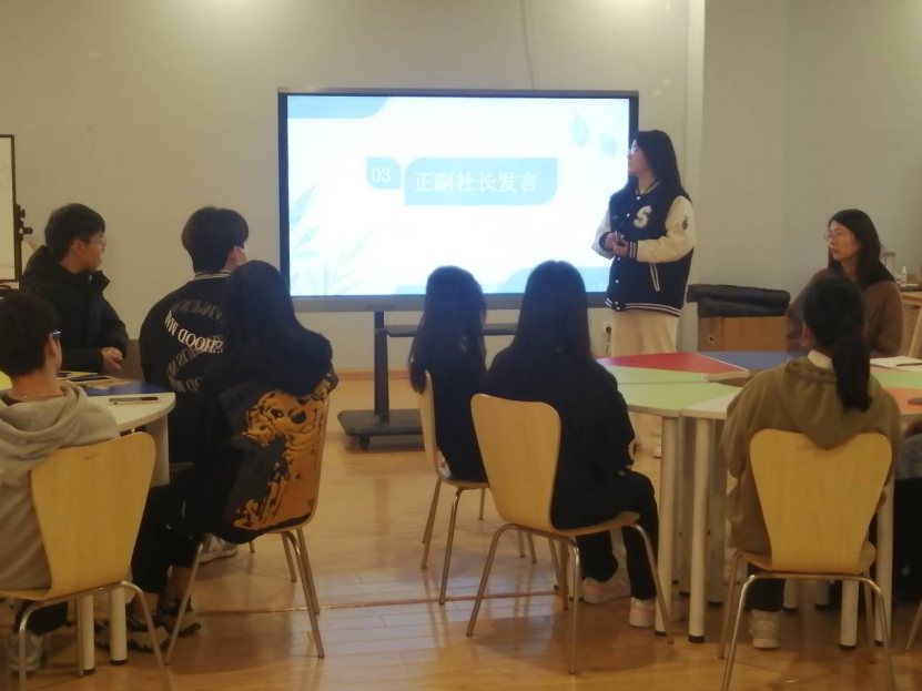 本次例会由社长陈宁主持,首先陈宁介绍这一个学期的工作安排,强调近期社团工作的注意事项。接下来各部门部长对部门的工作安排进行讲解,随着会议的不断深入,大家也更明确了本学期的工作任务。之后社长和副社对接下来的活动提出了几个注意事项,最后社团指导老师张宝英对社团的活动安排的细节做出了指导,针对后期工作内容和跨部门合作、交流进行讲解,进一步强调了社团队伍的建设。