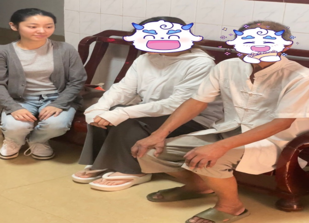 图4:辅导员叶懿蛟老师代表学校和学院送上慰问金和关怀