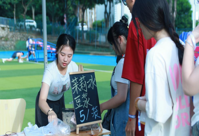 图5:茉莉冰豆浆摊主为同学们制作饮品