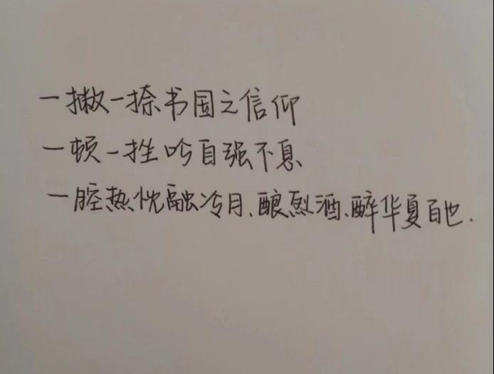 本次活动共分为三个赛道,A赛道是手写三行情书,B赛道是摄影写作,C赛道是设计国庆原创logo。三个赛道都紧紧围绕国庆主题展开,充分展现了人文学子对祖国的祝福与热爱。有助于增强人文学子的爱国主义认知,促进人文学子将爱国情融入血脉骨髓,将个人梦融入中国梦。
