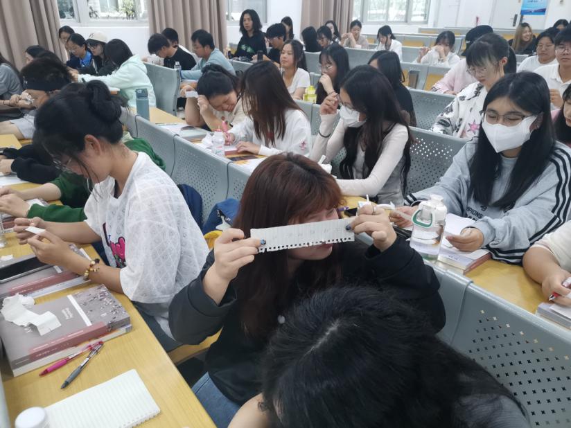 翁洁老师首先带领同学们体验“生涯量量看”团体辅导活动。在撕纸条、对比纸条的过程中,同学们清楚地看到不同长度纸条所代表的内容,以及它们在人生长河中所占的比例,帮助大家越来越清楚地感知到自己当下剩下的学习、工作时间非常珍贵,它们要用来创造自我价值,并在社会生活中为自己赢得一席之地,自我供给令自己满意的人生。大家纷纷表示求学时光宝贵而短暂,要珍惜时光。其次,翁洁老师分别向同学们介绍了心理咨询专业、心理健康教育专业的人才培养方案,使同学们明确国家、社会、学校对自己三年后的成长成才要求。通过进一步介绍课程体系、实践教学体系,同学们开始了解大学的主要课程、实践活动、竞赛活动和考证要求,初步认识到各门课程的主要内容及其与自己未来将要形成的职业能力之间的关系。