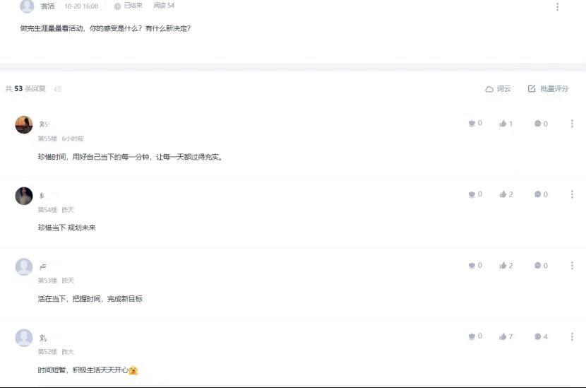 图6 同学们在学习通平台讨论分享自己的入学目标