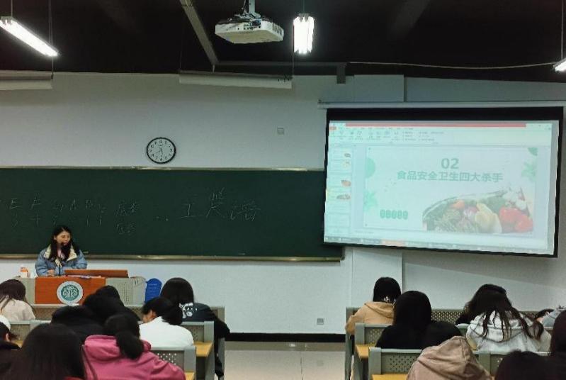 会上,两位老师以“食品安全”为主要内容向同学们深入讲解,围绕垃圾食品及其危害、食品安全注意问题、科学合理的饮食建议等内容,介绍了食品安全的相关知识。此外,老师们还强调了食品安全的紧迫性和重要性,提醒同学们要加强自我保护意识,主动监督食品安全,鼓励大家养成安全良好的饮食习惯。