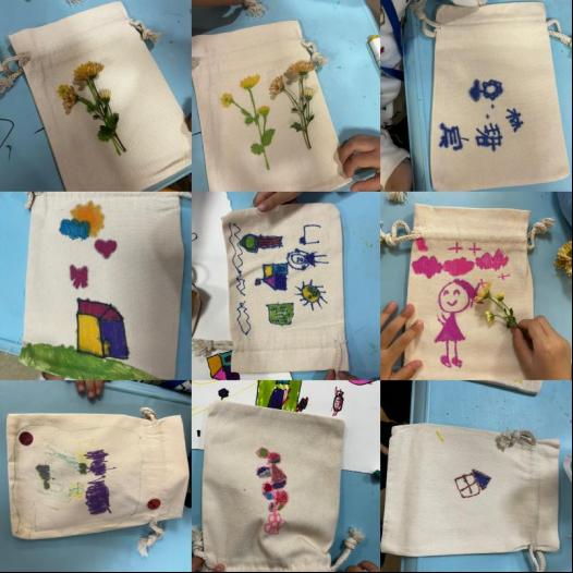 图4 我与环境:绘制帆布袋活动小朋友的作品展示