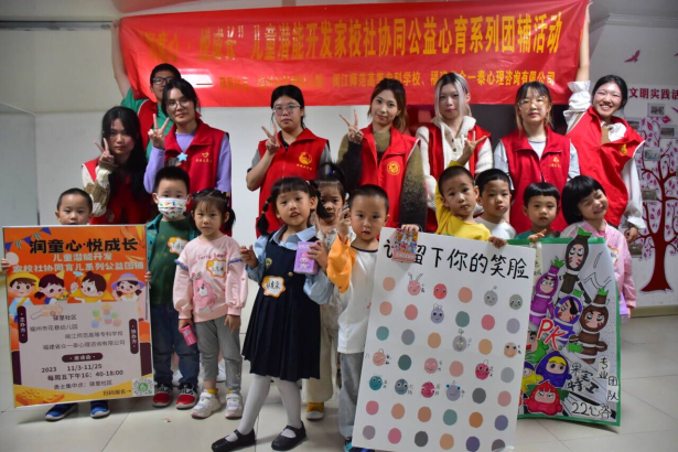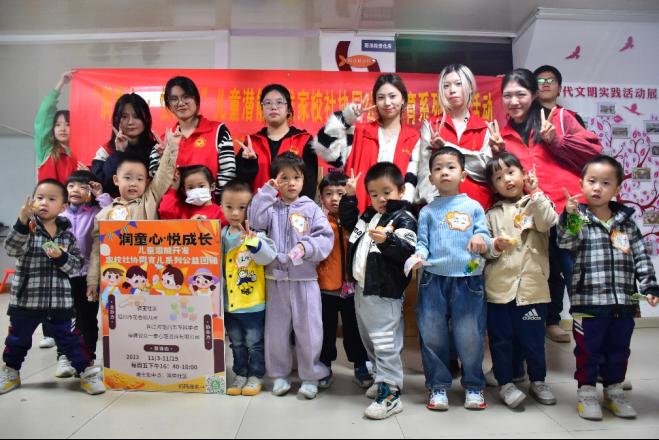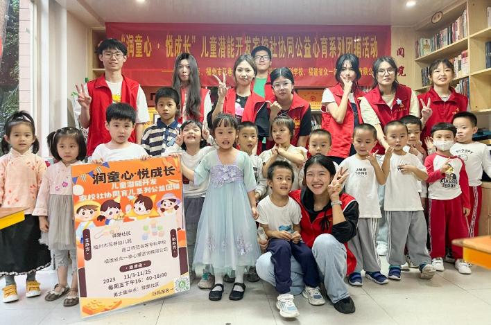 2023年12月1日,由驿里社区、福州花巷幼儿园主办,闽江师范高等专科学校心理学师生团队、福建省众一泰心理咨询有限公司协办的“‘润童心·悦成长’儿童潜能开发家校社协同公益心育系列团辅活动”圆满落下帷幕。