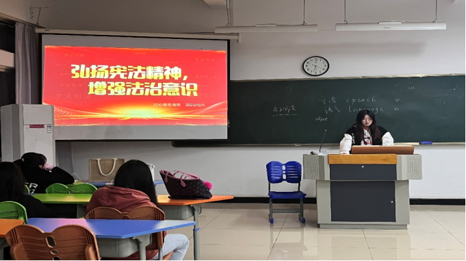 为深入贯彻习近平法治思想,弘扬宪法精神,促进我校师生深入学习宪法、理解宪法、维护宪法,能够依法维护自身合法权益。12月5日,22心理咨询班和22心理健康教育班举行“宪法教育”活动。
