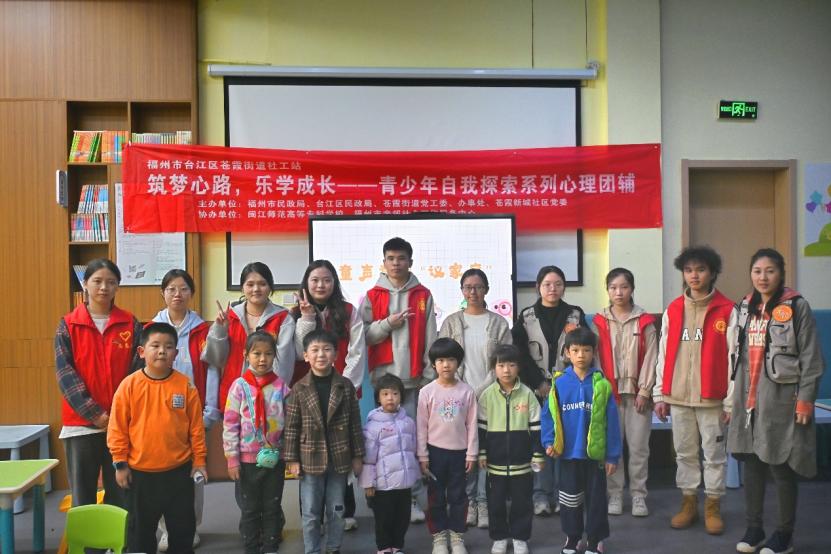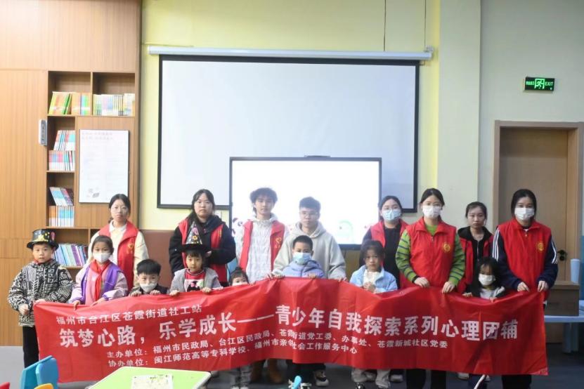 2023年12月8日下午,由福州市民政局、台江区民政局、苍霞街道党工委、办事处、苍霞新城社区党委主办,闽江师范高等专科学校、福州市亲邻社会工作服务中心协办开展的“筑梦心路,乐学共长”青少年自我探索系列心理团辅活动,伴随着最后一期“童声童议,议社区”主题活动在苍霞新城社区儿童梦想空间成功举办,历时一个月的团辅系列活动完美收官。