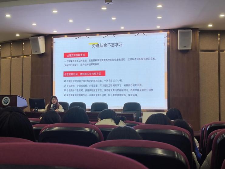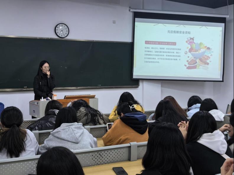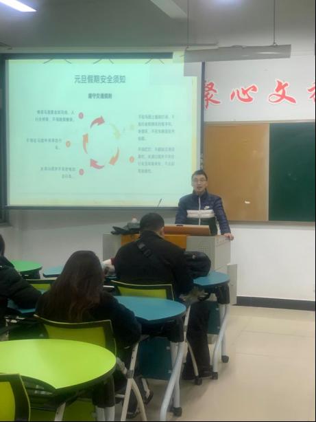 活动中,四位辅导员从交通、饮食、消防、防诈骗等七个方面进行了全面的安全教育。首先辅导员们从交通安全教育作为切入点,提醒学生们尽量不乘坐超载、无证、无牌等存在安全隐患的交通工具。与此同时,也强调了在家用电、用火、用气等方面的安全事项及饮食卫生的重要性。元旦假期也是流感高发的时段,建议学生尽量不去人群密集的公共场所,做到多喝水、多休息,出门时佩戴口罩。除此之外,辅导员们鼓励学生在假期中合理安排学习和休息,针对自己的学习情况进行查漏补缺,为即将到来的期末考试做好充分准备,取得优异的成绩。