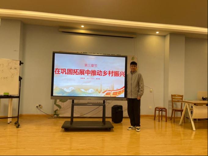 图2:22心理咨询班团支部成员王威讲解乡村振兴
