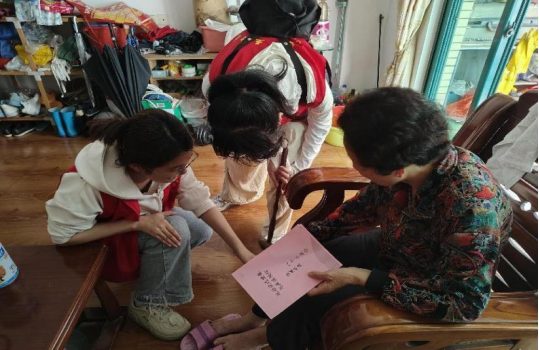 各入户小组携带着艾草锤与爱心物资进入到服务对象家中,向有需要缓解疼痛的困难家庭送上艾草锤与穴位小册子,并进行穴位敲打演示与讲解,将缓解疼痛的方法教授给服务对象。居民骨干负责询问困难家庭一天的具体安排,志愿服务队新成员向老成员学习如何搜集捕捉信息后也进行了初次尝试,成员间相互配合完成任务。活动结束后,各小组将入户所了解的原始信息填写完整。