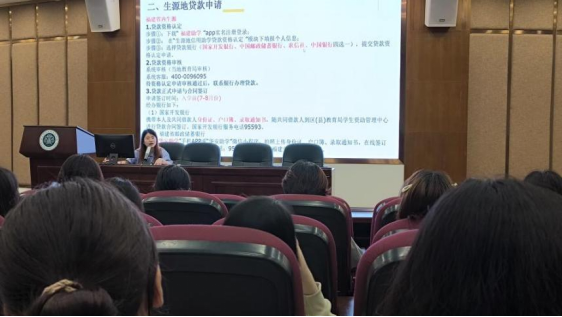 图2:辅导员陈少霞老师介绍如何申请生源地助学贷款