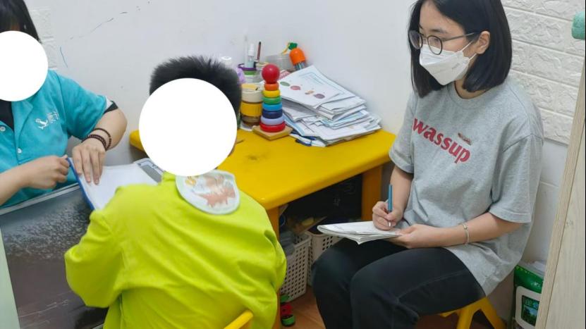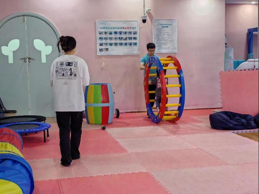 在此次见习活动中,两名学生首先参观了康语语言训练机构的各个功能区,包括评估室、感统室、融合室等,初步了解机构的运作模式和课程安排。随后,学生们在机构专业人员的指导下,参与了患儿的语言康复训练课程以及感统训练课程、启智训练课程,并作为课程助教辅助学生学习融合训练课程,亲身感受了康复训练的实际操作过程。