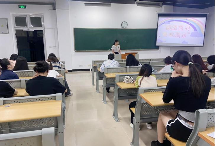 为增强学生心理健康意识,提升情绪调节能力,疏解期末心理压力,人文与管理学院于6月16日在2-605教室成功举办“缓解压力,完胜期末”主题教育,本次活动由黄益群老师、李姗老师共同主持,人文与管理学院22级全体学生参加。