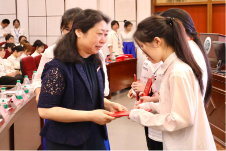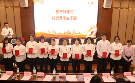 图7:谢姗姗副院长颁发校三好学生和校优秀学生干部荣誉证书