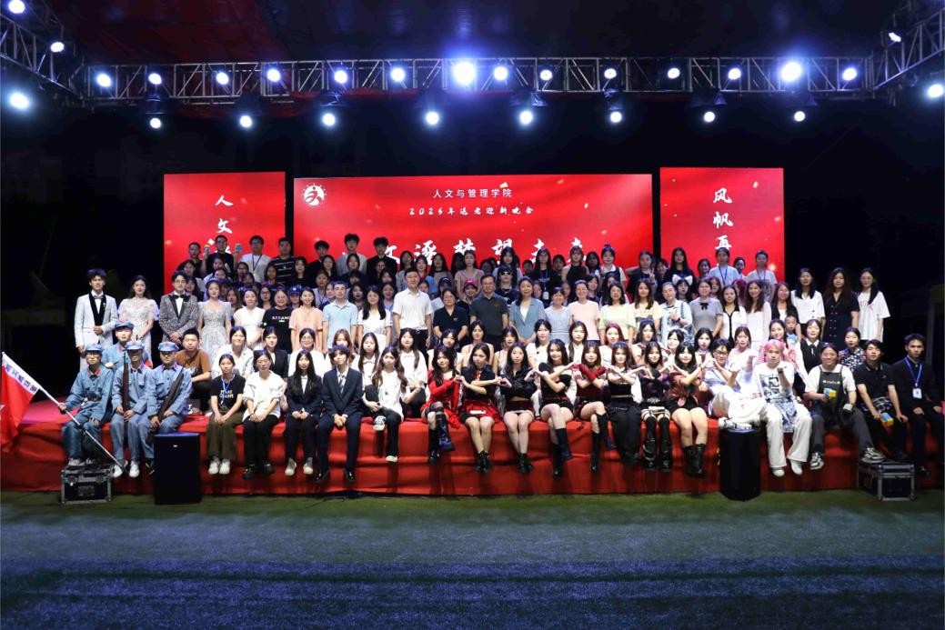 为热烈欢迎24级新生的到来,并为即将毕业的22级学长学姐们送上真挚祝福,6月12日晚上,人文与管理学院在操场隆重举办“人文逐梦望未来,风帆再起迎新程”送老迎新晚会。学校领导班子、师生代表齐聚一堂。激昂的鼓点骤然响起,炫酷的电吉他声划破夜空,一首节奏强烈的歌曲《神奇的赛尔号》震撼开场,瞬间点燃全场热情,观众们随着节奏挥舞双手,欢呼声此起彼伏。随后,舞蹈、歌曲、小品、情景剧等节目轮番登场,形式多样、内容丰富。此外,晚会还设置了抽奖环节,不仅为观众带来了意外惊喜,更将现场气氛推向新的高潮,编织毕业纪念与迎新期许交织的美好篇章。