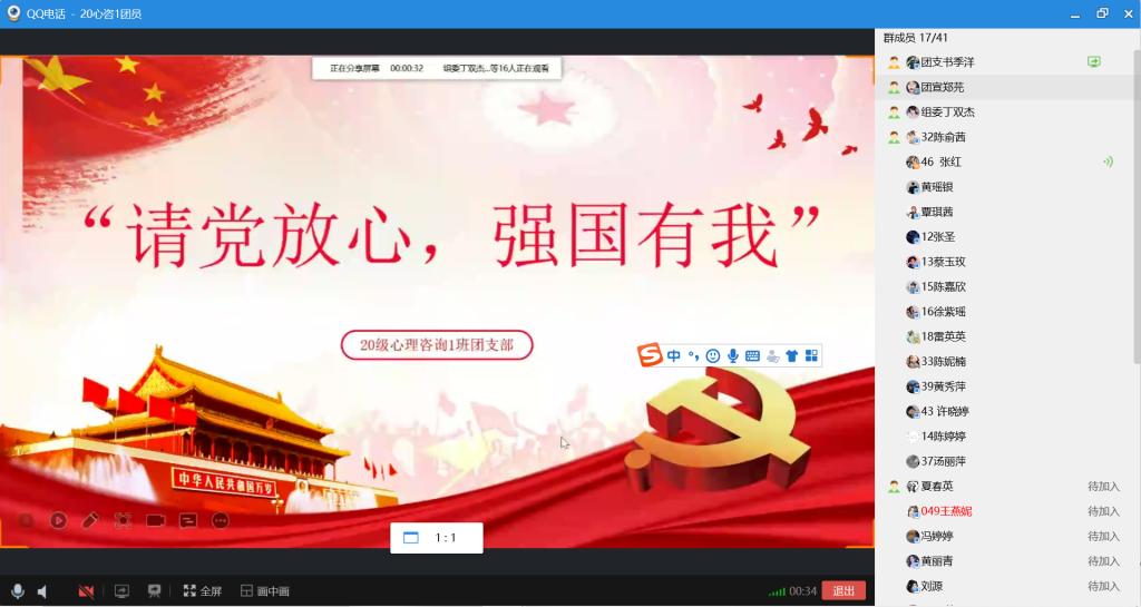 今天中国巍然屹立在世界东方,没有任何力量能够撼动我们伟大祖国的地位,没有任何力量能够阻挡中国人民和中华民族的前进步伐!2021年9月23日,人文系20级心理咨询1班于团员QQ群开展了“请党放心,强国有我” 的线上团日活动。