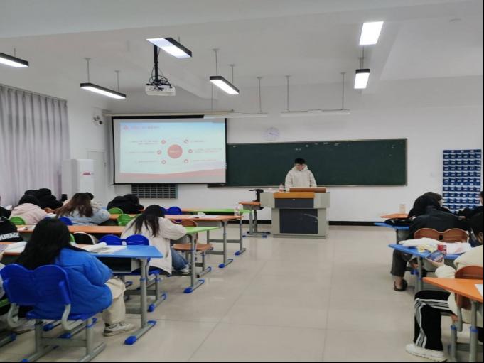 图1:22心理健康教育班团支书王一棉主持团日活动