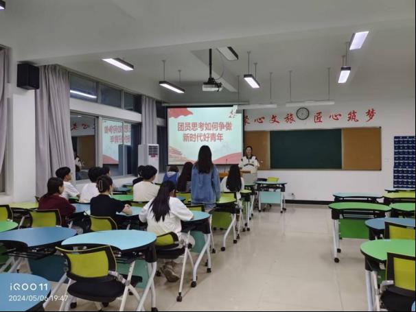 活动开始,组织委员进行了点名,全体团员起立,齐声高唱团歌,展现了团员们的精神风貌和团队凝聚力。随后,团支书向全体团员传达了时代赋予青年人的使命,并播放了相关视频,让团员们更加深刻地认识到自己肩负的责任和使命。接着,团支书提出了青年人的担当与使命,鼓励团员们要勇担时代重任,积极投身于实现中华民族伟大复兴的历史洪流中。同时,团支书还安排了一个有趣的小活动——梦想卡,通过让团员们写下对青春梦想和国家的期望,激发了团员们的爱国热情和奋斗精神。最后,各团支部还举办了读书分享会,团员们分享了自己最喜欢的书籍,并进行了充分的交流和讨论。