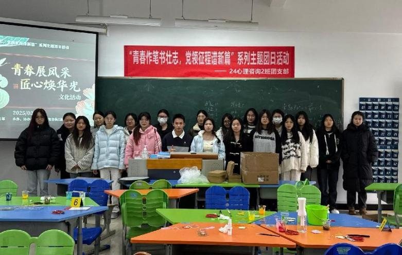 3月12日,24心理咨询2班团支部在教学楼3-703教室、“一站式”学生社区特色功能区开展“青春展风采,匠心焕华光”主题团日活动,通过“理论+实践”模式沉浸式体验掐丝珐琅技艺,传承非遗文化,辅导员叶懿蛟参加了本次活动。