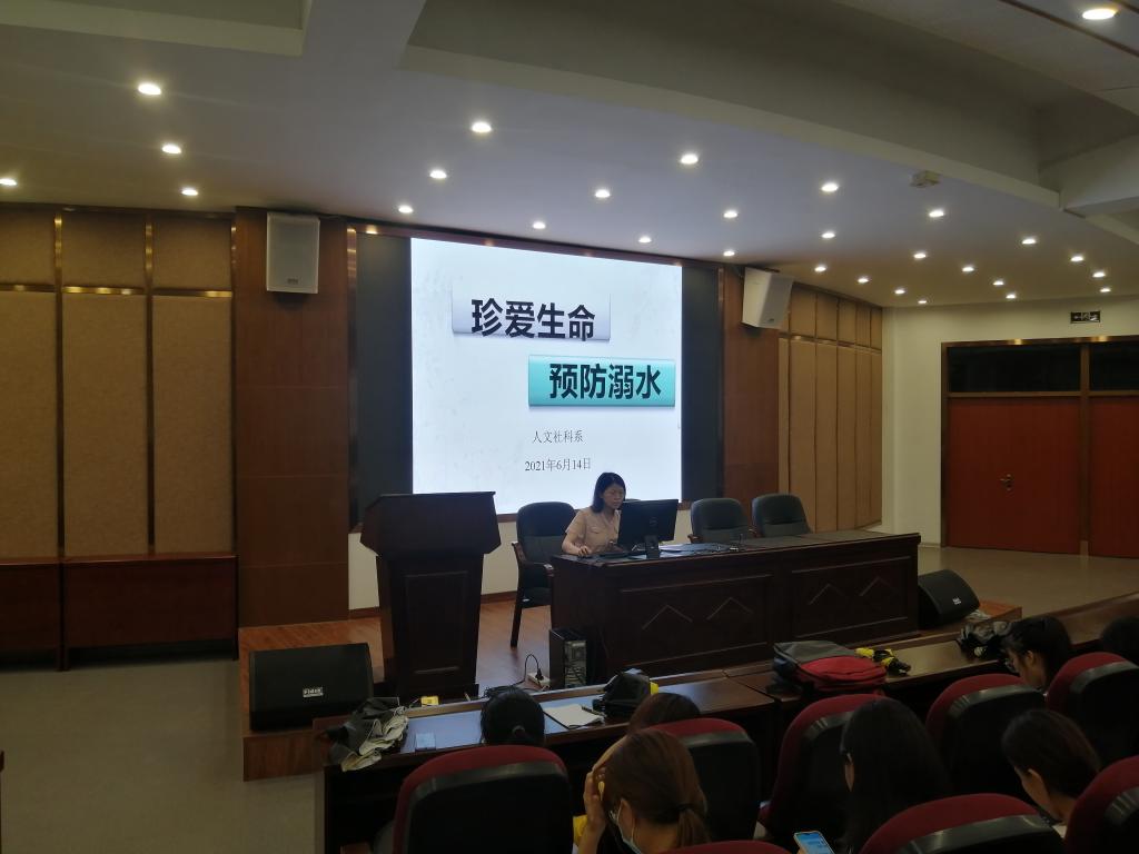 主题教育的起初由人文社科系19级辅导员黄益群从每年溺水人数统计总结进而教育同学们提高溺水安全的重要性;其次对于溺水情况时应该如何自救的做出明确的规范措施进行说明以及遇到他人溺水时应该如何拯救他人;最后为同学们罗列出安全游泳的注意事项,规范了游泳安全的各项条例。