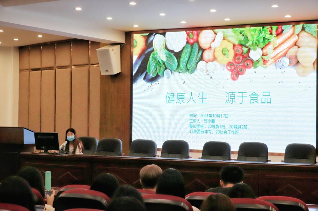 为进一步增强学生的食品安全意识,加强学校食品安全教育宣传工作,营造良好的校园食品安全环境。2021年10月17日晚20:30,人文社科系2020级辅导员陈少霞老师和夏春英老师在仓山校区多功能报告厅开展“健康人生,源于食品”的主题教育活动。