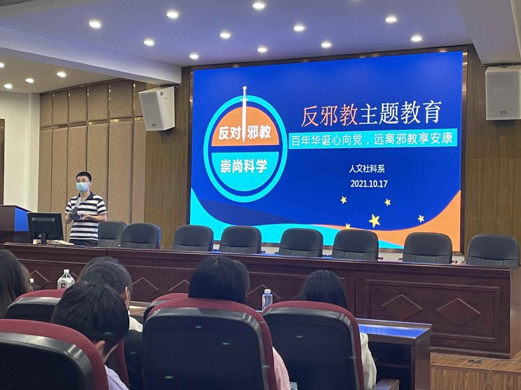 为使广大学生进一步提高识别、抵御和有效防范邪教的能力,培养学生正确的世界观、人生观。福清校区辅导员周海英老师、仓山校区辅导员叶懿蛟老师带领人文系同学于10月17日晚,举办“相信科学,反对邪教”的主题教育活动。