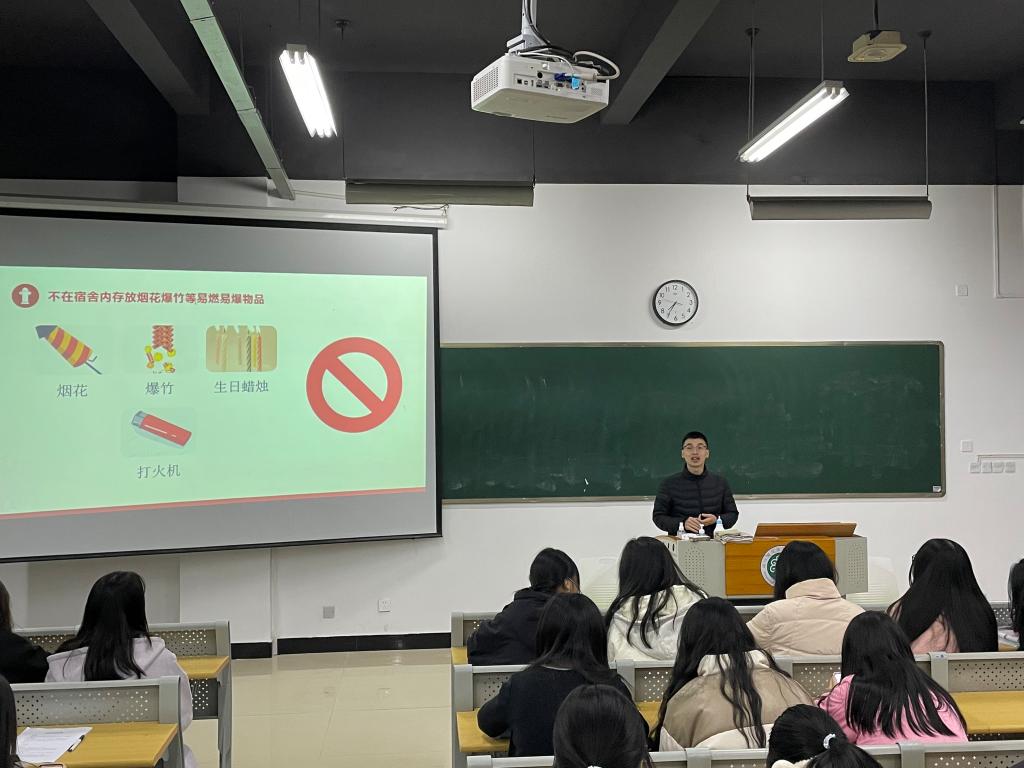 本次主题教育,两位老师从宿舍消防安全、交通安全、人身安全、防疫安全、离校注意事项等方面,全方位向同学们进行讲解。会上,周老师着重强调了安全防范意识的重要性,教育大家要树立“安全第一”意识,增强自我防范、自我保护的知识和本领。