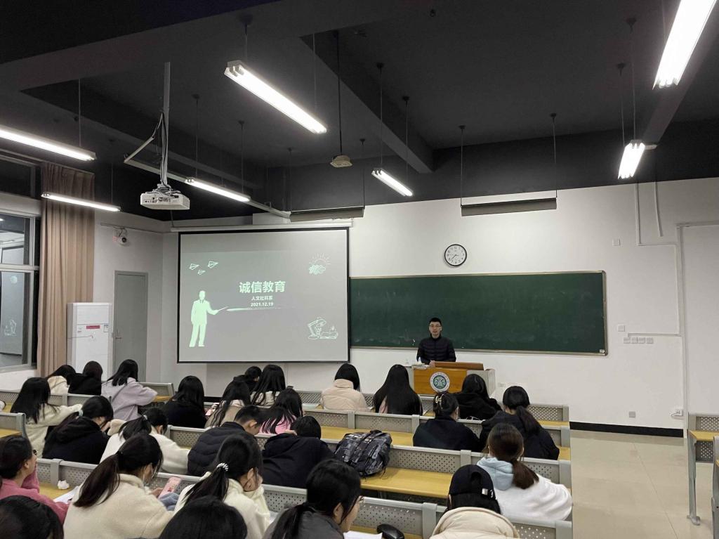 12月19日,为了迎接期末考试,闽江师范高等专科学校人文社科系在福清校区以及仓山校区召开有关诚信应考的主题教育活动,为21级人文社科系全体同学展开考前思想教育,此次活动由仓山校区辅导员叶懿蛟老师和福清校区辅导员周海英老师主讲。