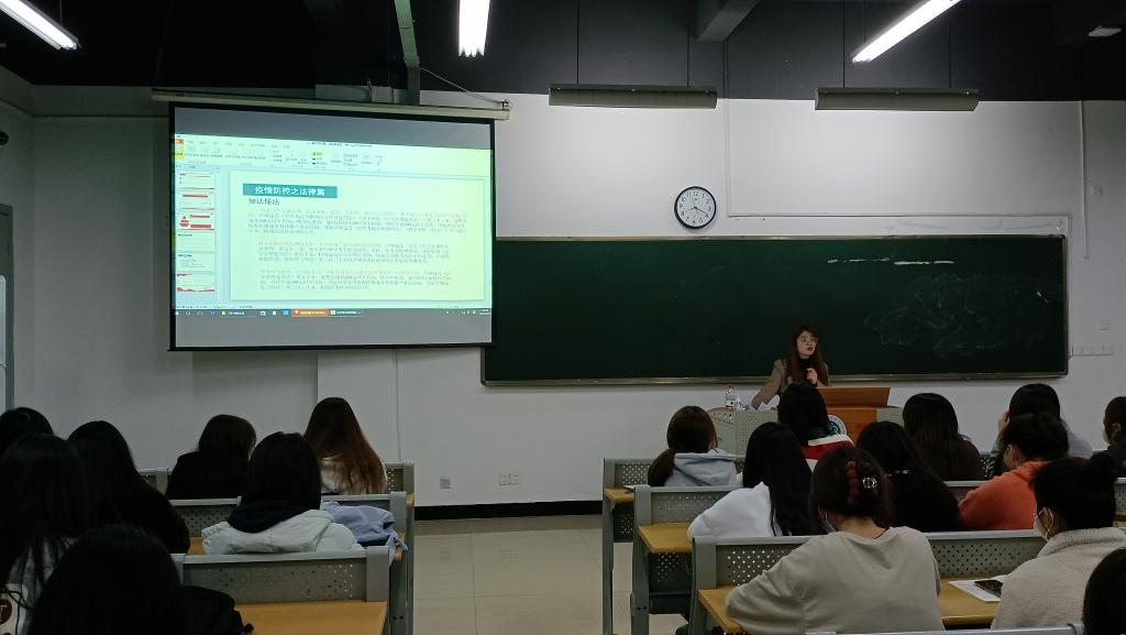 2月27日,为进一步加强校园疫情防控引导教育工作和强化疫情环境下的个人道德和法制观念,我校人文与管理学院辅导员夏春英和陈少霞老师开展了“防控疫情,法制同行”主题教育。