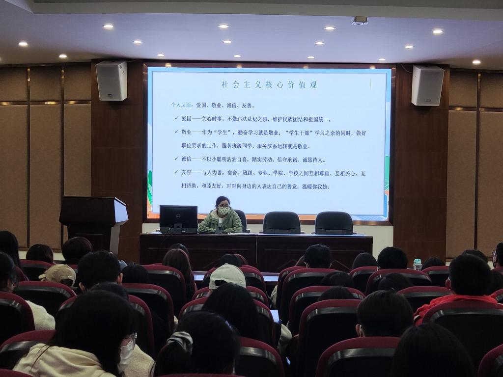 在本次“防控疫情,法制同行”主题教育中,辅导员再次强调校园防疫的重要性,呼吁同学们做好校园防疫工作,并积极引导同学们共同塑造良好的校风学风,及时调整作息,遵守校规校纪,热爱学习,锻炼提高自身专业技能等。辅导员在讲话中提出,希望每个同学都努力践行社会主义核心价值观,做到爱国、敬业、诚信、友善的同时,做到知法、懂法,做到在法律的阳光下成长,在疫情期间做到不传谣、不信谣,坚信谣言止于“智者”。