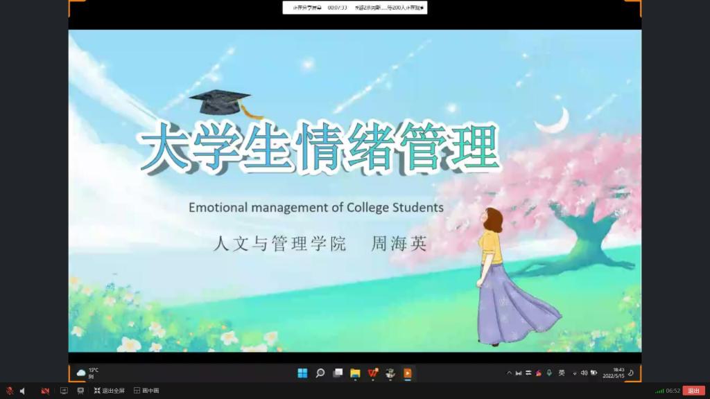 为增强大学生的自我心理调适能力,帮助大学生解决身心发展过程中的心理问题。5月15日,人文与管理学院福清校区通过线上开展“大学生情绪管理”心理专题活动,此次专题活动由福清校区辅导员周海英老师主讲。