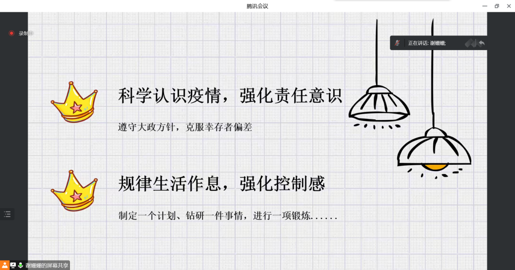 本次疫情来势汹汹,给在校师生的生活都带来了较大影响。本次主题班会的开展,对于学生思想引领起到了积极作用,及时关注到封校学生在学习、生活、情绪和心理上的变化,同时提供了一个平台让同学们互相交流、抒发感想、答疑解惑,更有利于营造封校期间积极、良好、温馨的校园氛围。