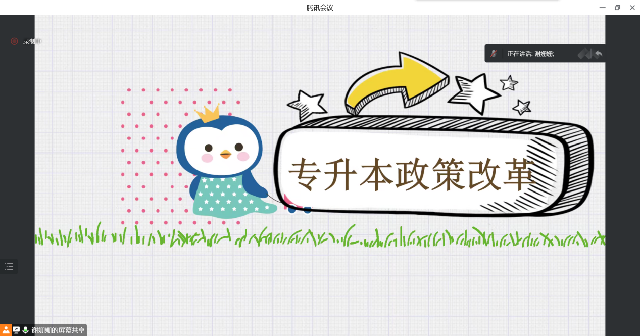 班会开始,谢姗姗老师先是对当下疫情形势进行分析,安抚大家的面对疫情的不安情绪,通过PPT呈现等方式讲解疫情防控知识、疫情下调节情绪的方法、生活作息等方面,帮助同学们寻找心理健康调适方法。呼吁同学们有问题及时反馈,寻求帮助。其次,对专升本新政策进行了一个系统的讲解,使得同学们对专升本有了新的概念和进一步的了解,有助于同学们对未来的规划更加明确。最后,谢老师还逐个宿舍和同学谈心谈话,了解同学们的学习生活情况和面临的困难。
