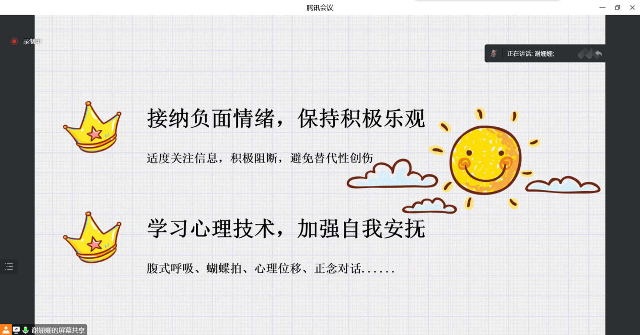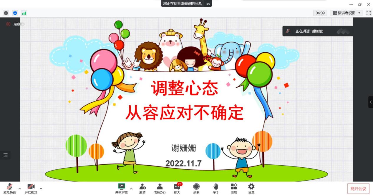 为维护学生身心健康,创建平安校园,调整学生心态,增强学生的自律和防护意识,21心理咨询1班于11月7日晚在线上腾讯会议开展此次“调整心态,从容应对不确定”主题班会。