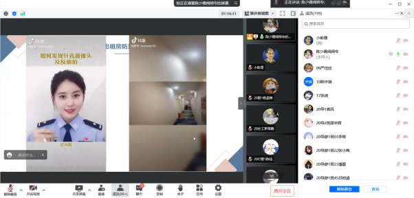 为切实增强学生的安全防范意识和避险能力,保障学生的健康安全,营造和谐稳定的校外实习住宿环境,2023年2月19日晚,人文与管理学院2020级辅导员陈少霞老师给毕业班学生开展“安全教育,铭记于心”的线上主题教育活动。