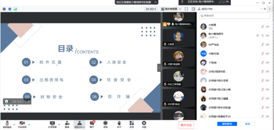 没有安全就没有未来,要时刻紧绷安全的弦。通过本次线上会议,同学们对安全知识有了更为深入的了解,深刻认识到安全的重要性,真正去做到安全伴我行。