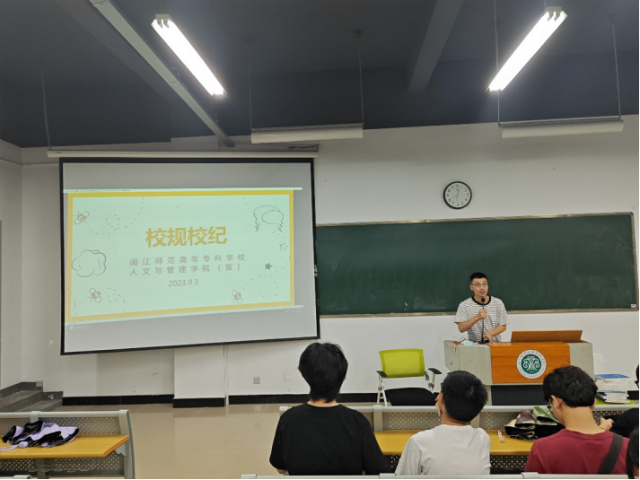为规范学生日常行为,强化文明班级和文明宿舍建设。9月3日,人文与管理学院开展“校规校纪”主题教育,此次活动由叶懿蛟老师主讲。
