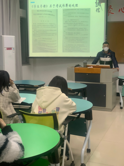 图1:叶懿蛟老师讲解《学生手册》中关于考核违纪与考核作弊处理办法