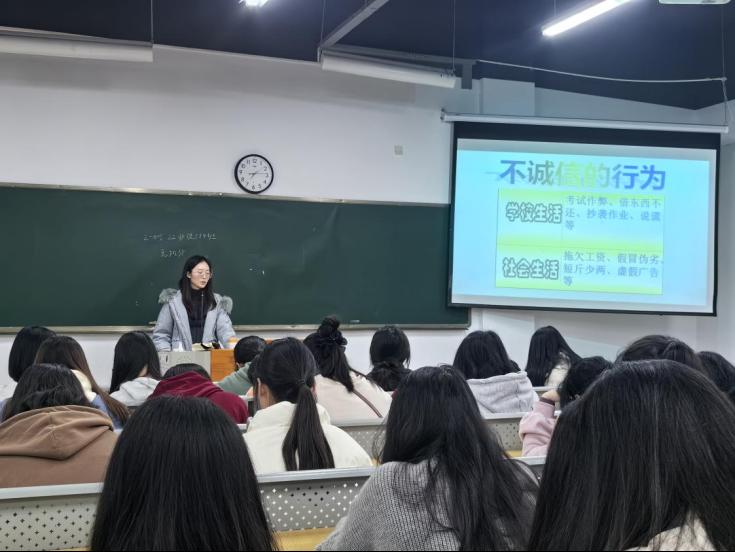 为培养学生诚信考试的良好习惯,促进学院优良学风的建设,人文与管理学院于1月1日开展了“诚信考试”的主题教育活动。本次主题教育活动由叶懿蛟老师、陈少霞老师、陈佳榕老师共同主持,人文与管理学院23级全体学生参加。