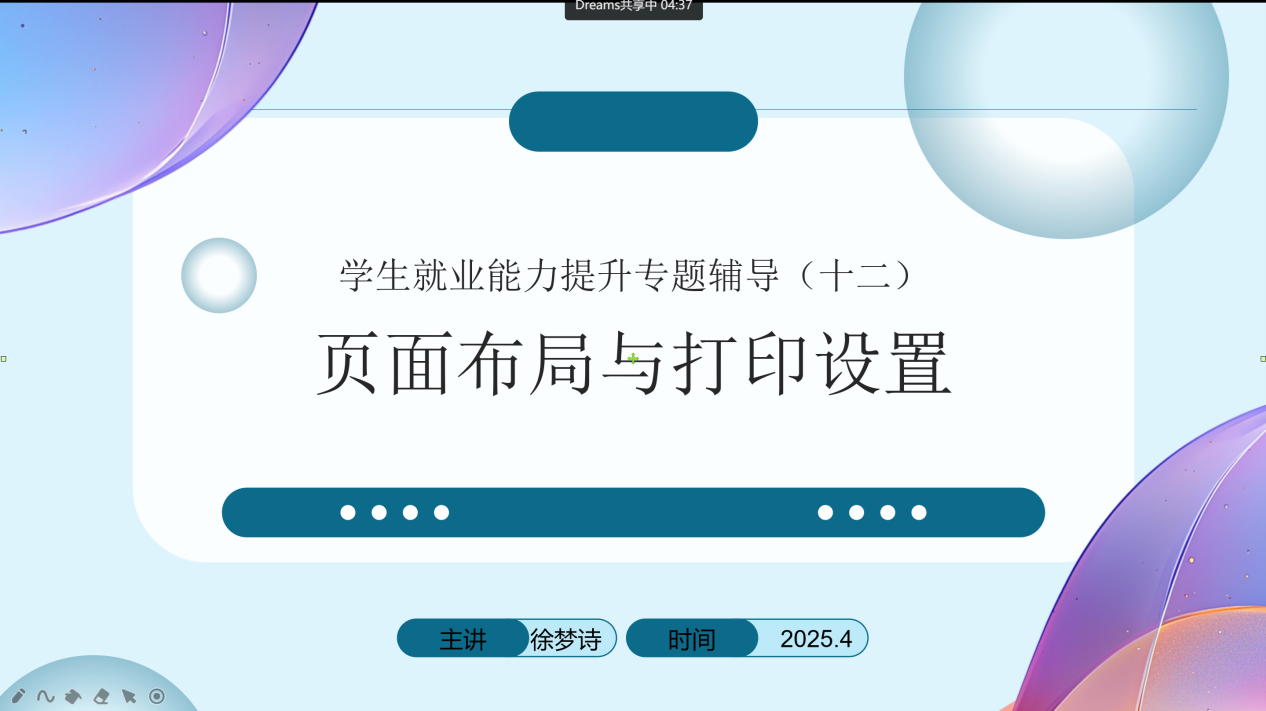 为更好地助力毕业班学生提升求职技能,人文与管理学院于4月19日下午16:00通过线上开展第十二期学生就业能力提升专题辅导活动。本期分享活动的主题为“‘精准打印,‘表’现出色’:页面布局与打印设置”,由行政管理专业教师徐梦诗主讲。