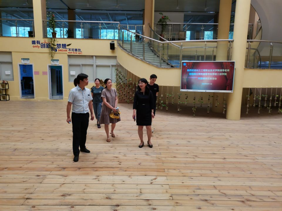 长江工程职业技术学院与我校均为中小企业创业与经营专业国家级教学资源库的参建单位,双方相关教师此前已就资源库建设方面有了比较深入的交流,本次调研侧重了解我校作为福建省三创教育示范院校,在开展三创工作方面的主要做法和经验。