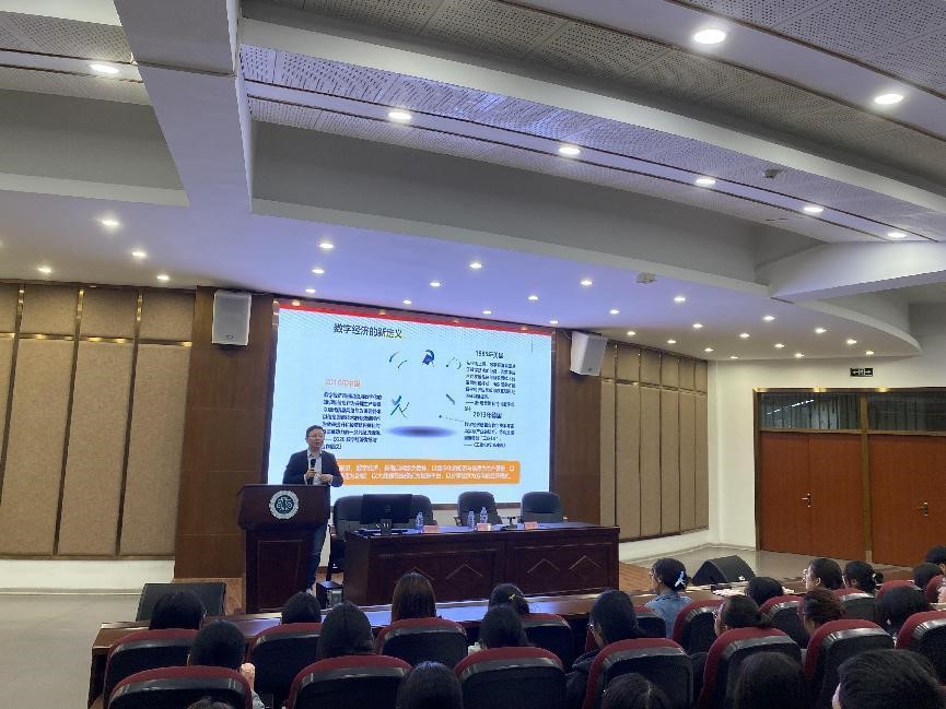 讲座中,王震先生结合个人丰富的创业成功经验,从数字经济时代的到来、数字经济技术支撑、数字中国应用场景三个方面阐述人工智能的历史沿革、范式流派及发展现状,并探讨了人工智能在未来发展过程中面临的机遇与挑战。讲座全程引起同学们的强烈共鸣,通过与企业家面对面交流,使我校青年学子进一步了解人工智能领域的新形势以及行业对人才的需求和标准,对挖掘自身潜能、定位职业规划、激发创新创业意识起到积极作用。