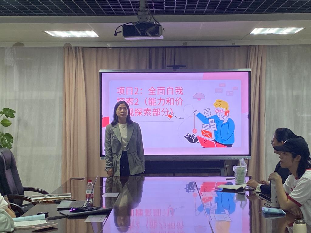 随后,林琴琴老师针对《职业生涯规划与就业指导》课程中《项目2:全面自我探索(能力和价值观探索部分)》进行分享。作为长期深耕职业规划教学的教师,林老师从“教学目标定位”“教学工具选择”“教学难点突破”三个维度展开详细解读。她强调,在自我探索教学中,需避免工具依赖,要引导学生结合自身经历验证测评结果,同时关注价值观冲突的解决,例如当职业发展空间与工作稳定性出现矛盾时,如何帮助学生理性分析、做出适合自己的选择。
