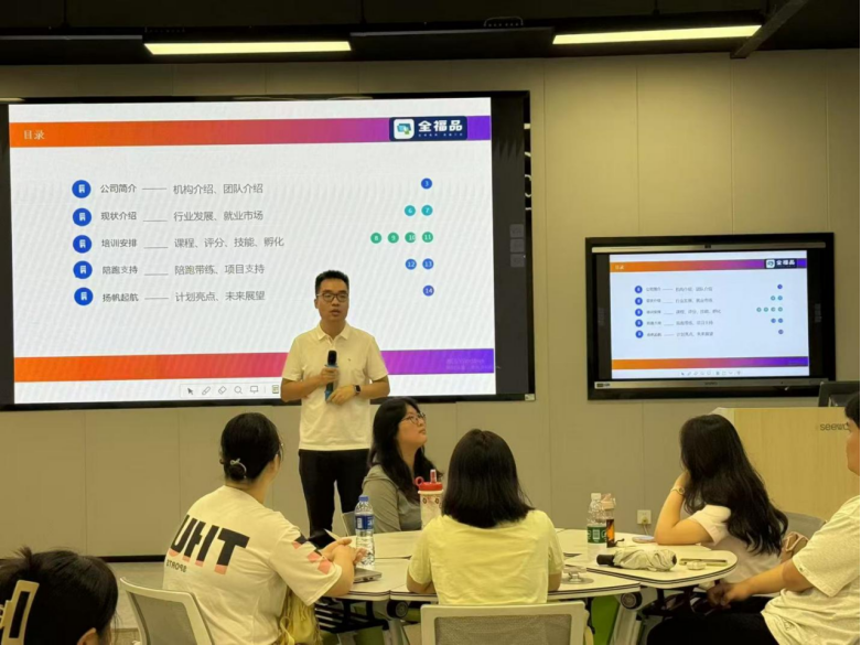 数字中农科研院(福建)有限公司副总经理、全福品达人MCN运营负责人、三创赛乡村振兴实战赛陪跑总教练董程滨代表企业对此次微专业的培训安排和陪跑支持作了详细介绍,并分享了行业最新趋势与实战经验,鼓励学员全力投入课程学习,“未来的营销战场属于懂内容、懂技术、懂用户的人。”